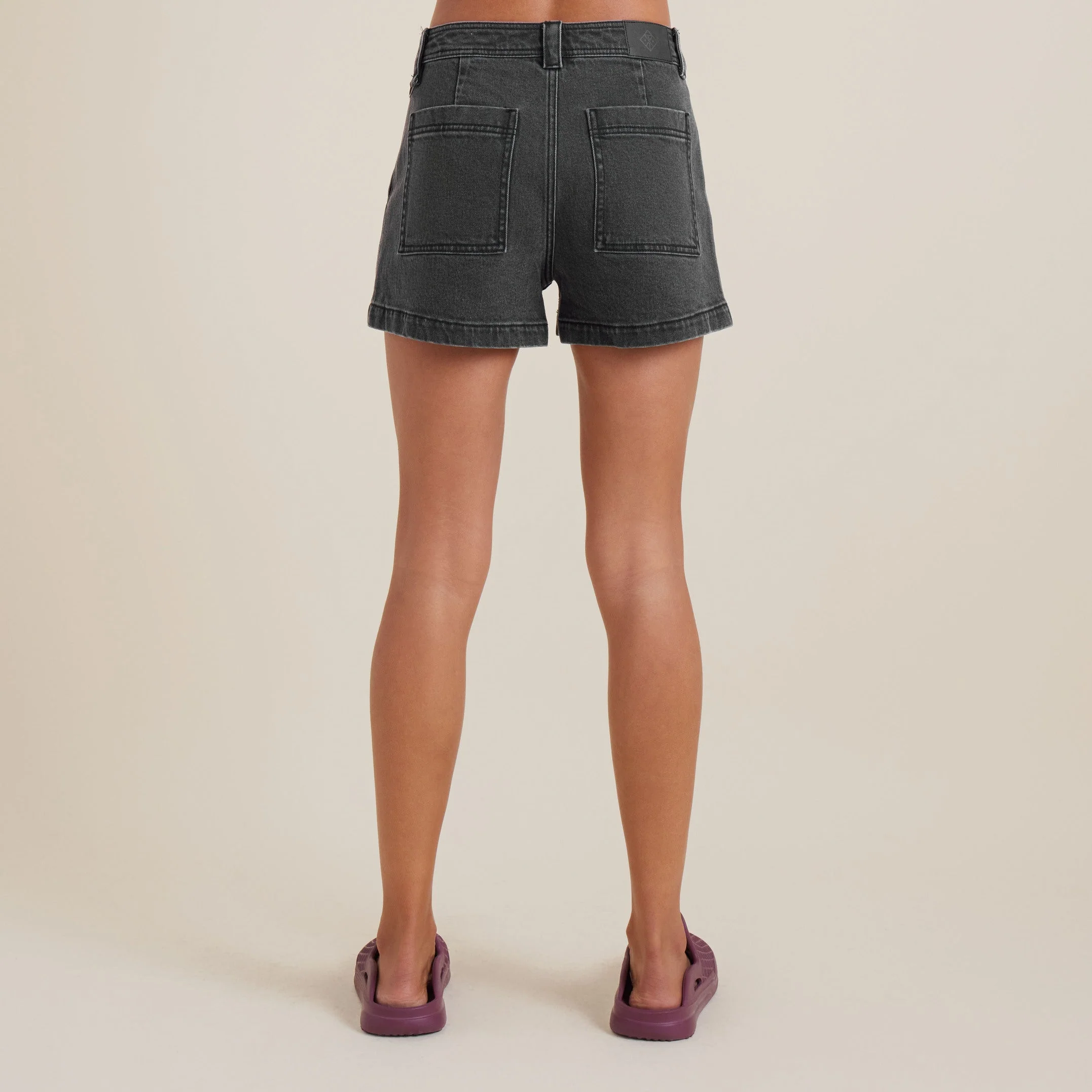 Meet our newest short to the lineup, The HWY. Featuring a sun-faded wash and high-waist, this denim short is your stylish companion on any road-trip this spring. Crafted with sailor utility pockets, a zip fly, and a 3" inseam, you can pair these bad boys with any look and know you look damn good.